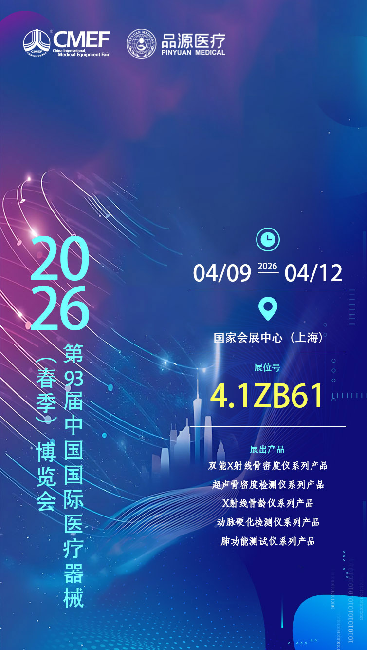 時(shí)隔一年,品源醫(yī)療再度赴約這場(chǎng)醫(yī)械行業(yè)盛會(huì),屆時(shí)將攜雙能X射線骨密度儀、超聲骨密度檢測(cè)儀、X射線骨齡儀、動(dòng)脈硬化檢測(cè)儀、肺功能測(cè)試儀五大核心系列產(chǎn)品參展,全方位展示品牌在健康檢測(cè)、慢病篩查、生長(zhǎng)發(fā)育評(píng)估等領(lǐng)域的技術(shù)積淀與產(chǎn)品實(shí)力,與行業(yè)同仁共話醫(yī)療發(fā)展新機(jī)遇。