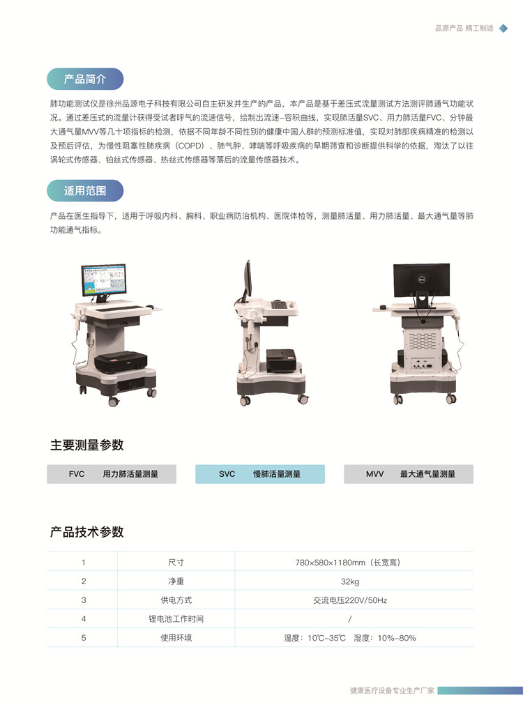 適用范圍:產(chǎn)品在醫(yī)生指導(dǎo)下,適用于呼吸內(nèi)科、胸科、職業(yè)病防治機(jī)構(gòu)、醫(yī)院體檢等,測(cè)量肺活量、用力肺活量、最大通氣量等肺功能通氣指標(biāo)。