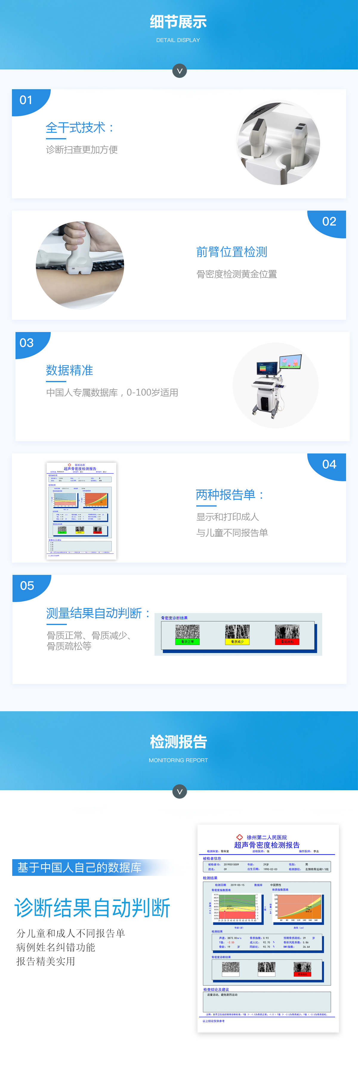 ■ 軟件優(yōu)勢(shì)::BMD-A系列超聲骨密度檢測(cè)儀一臺(tái)儀器裝配有智能分析系統(tǒng),經(jīng)濟(jì)實(shí)用。可測(cè)量0-100歲人群。
